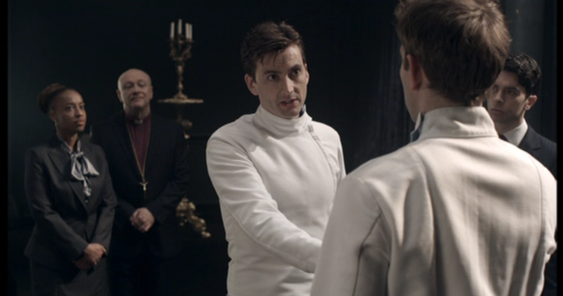 Laertes occupies Hamlet’s thoughts for another reason, however, in his regret at what passed between them at Ophelia’s graveside. Hamlet claims that he “forgot” himself, and justifies his behavior as being “put […] into a towering passion” by the “bravery of [Laertes’] grief” (3580-4). This can only refer to the mockery of Laertes’ hyperbolic expressions of praise for the dead Ophelia, and not to the fight itself (for which Laertes alone was responsible). Hamlet here accepts the blame for an excess of rage which would, of course, imply the kind of facile emotional responsiveness which these pages have claimed has become impossible to him. But the assertion does not tally well with the events, where we see Hamlet himself, even as he is under attack from Laertes, maintain that he is not “splenative and rash”, but nonetheless has lurking within him “something dangerous” which may be aroused when he is provoked (3457-8). One way of looking at this is to see the act of physical assault as generating the affective response which Hamlet’s own agency cannot (we will see at the play’s climax how this same external factor of assault is necessary to lead him to kill the king). But the “towering passion” of which he speaks is nonetheless marked by an emotional hollowness – having less to do with any feelings for Ophelia than with a cruel parody of Laertes’ own bombastic style. Thus his contention that he had become enraged seems more like an artefact of his new self-presentation as ‘Hamlet the Dane’: a ‘mighty opposite’ whom others must “fear”, not least because he is being guarded and guided by fate.