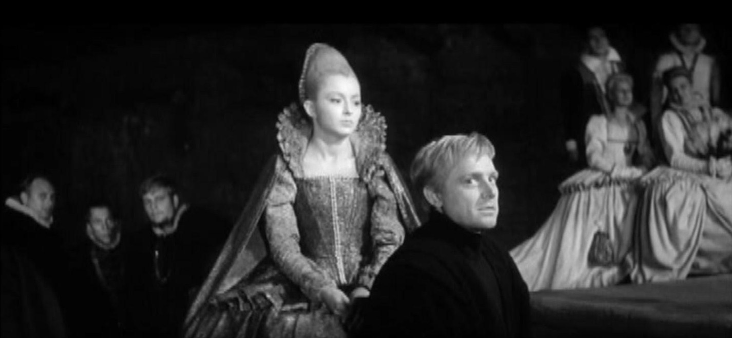 The huge body-count at the end would probably have answered a number of Elizabethan expectations about tragedy from plays like The Spanish Tragedy and Titus Andronicus onwards, as would its depiction of the fall of a Prince to a miserable end [3]. But a more promising criterion is perhaps offered by Philip Sidney’s commendation of tragedy in the Defense of Poesie, where he argues that the genre ‘showeth forth the ulcers that are covered with tissue [and] maketh […] tyrants manifest their tyrannical humours’. Precisely such a tragic ‘pay-off’ is demonstrated in the scene which this page will look at in detail, when Hamlet’s ‘Murder of Gonzago’ play prompts from Claudius the recollection of his own crime of fratricide followed by a highly public outburst. But while Hamlet does from the outset show corruption in the Danish court (‘something is rotten in the state of Denmark’) and the destructive consequences of a vicious kingship being brought to light, it remains less likely to be experienced as a political tragedy than King Lear, Julius Caesar or Antony and Cleopatra. Rather, it comes closer to a play like Marlowe’s Dr. Faustus, which is primarily philosophical in emphasis, and in which the disaster attends on a person of intellect rather than of political action.